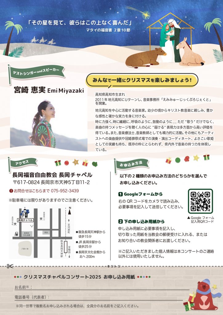 今年のゲストシンガーandスピーカーは去年に引き続き、宮崎恵実さんに来ていただきます。